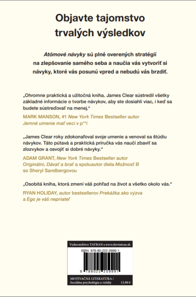 „James Clear roky zdokonaľoval svoje umenie a venoval sa štúdiu návykov. Táto pútavá a praktická príručka vás naučí zbaviť sa zlozvykov a osvojiť si dobré návyky.“