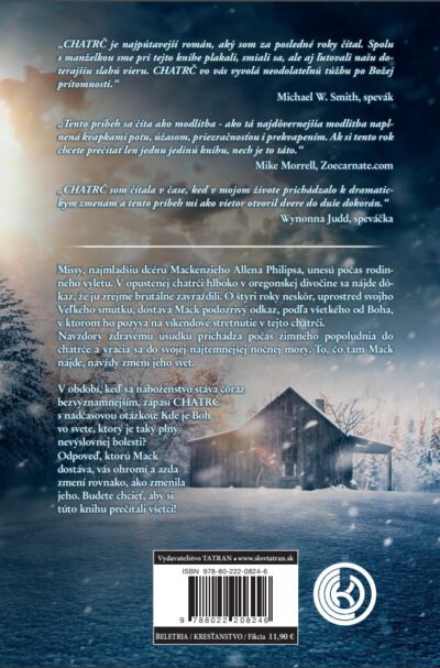Chatrč je pozoruhodná kniha, ktorá odpovedá na odvekú otázku ľudstva: Ak je Boh všemocný, prečo nespraví poriadok s bolesťou a zlom tohto sveta? Na túto otázku odpovedá Young so znepokojujúcou a zarážajúcou jasnosťou. Jeho príbeh sa začína ako modlitba – ako najlepšia modlitba naplnená potom, úžasom a prekvapením.
