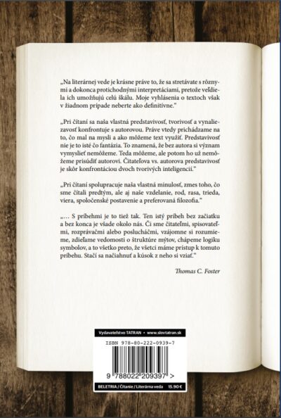 Thomas Foster vysvetľuje literatúru ako nečakané dobrodružstvo, ktoré nám odkrýva nové svety poznania. Hoci priznáva, že veľké príbehy a emócie boli napísané už kedysi dávno a každá doba ich len nanovo prerozpráva a dá im nový šat, nedajme sa zmiasť. Súčasné diela a autori sú rovnako zaujímaví a inovatívni ako ich dávni predchodcovia a navyše nám sprostredkúvajú odkaz nastupujúcich pokolení.