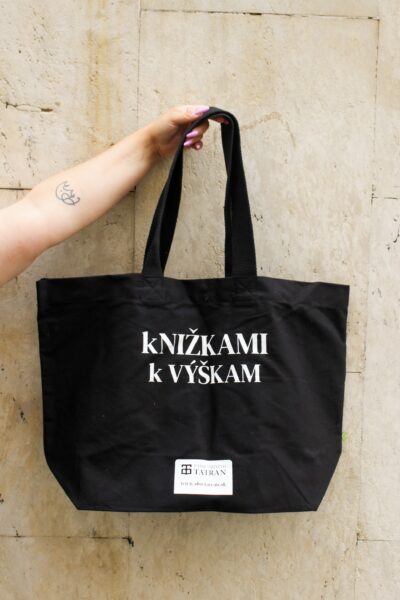 17.90 €Kvalitná ekologická bavlnená taška v čiernej farbe s nápisom kNIŽKAMI k VÝŠKAM poteší všetkých knihomoľov, ktorí si nemajú v čom odniesť svoje knižné aj neknižné dobrodružstvá.