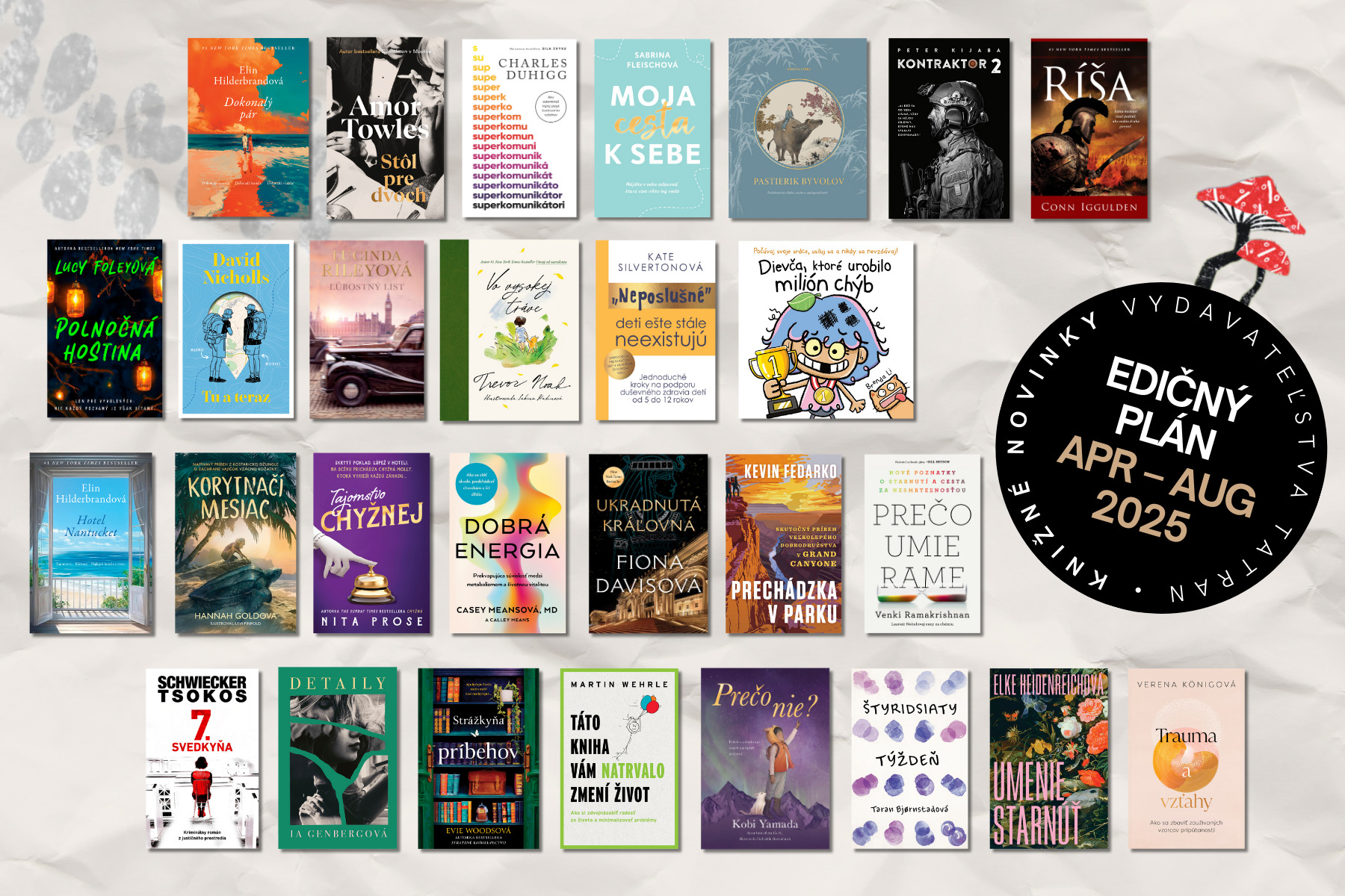 V edičnom pláne apríl – august 2025 sa môžete tešiť na knihy od vašich obľúbených autorov, ako sú Amor Towles, Lucy Foleyová či Nita Prose. Čaká vás aj novinka od Lucindy Rileyovej alebo pokračovanie knihy Kontraktor od Petra Kijabu. Veríme, že sa vám budú nové príbehy páčiť.