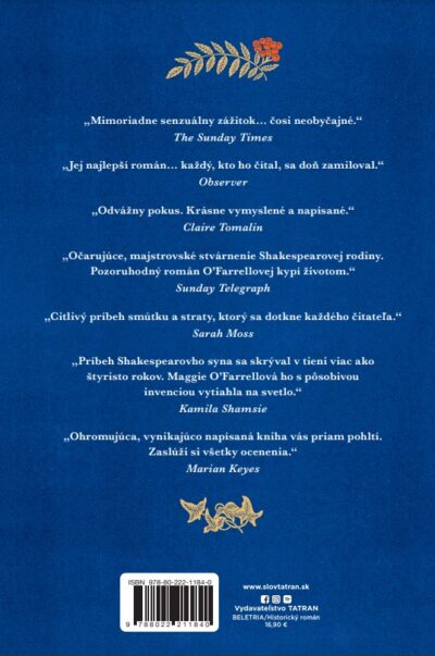 Majstrovské stvárnenie Shakespearovej rodiny ovenčené mnohými literárnymi cenami v preklade Otakara Kořínka! Autorka opísala úzky časový úsek zo Shakespearovho života, o ktorom vieme iba veľmi málo. Hoci vieme, že dvojča Hamnet zomrelo v jedenástich rokoch, nepoznáme príčinu jeho smrti. No nie je to príbeh o ňom. Hamnet je príbeh lásky a smrti. V jednej z časových rovín sledujeme prvé dni známosti Hamnetových rodičov. Agnes je nezvyčajne múdre dievča. Je trochu zvláštna – chová jastraba, rozumie vlastnostiam bylín a vie predpovedať budúcnosť. Záhadný lektor latinčiny Will je ňou očarený. Obaja pochádzajú z komplikovaných rodinných pomerov. Cítime silu ich vzájomnej príťažlivosti. Autorka nevynechala ani zmyselné detaily, ktoré príbehu neuberajú na kvalite. Výborne napísaný a skoncipovaný román k nám prehovára drsnou prózou a snová zmyselnosť zároveň dodáva príbehu zvláštnu atmosféru.
