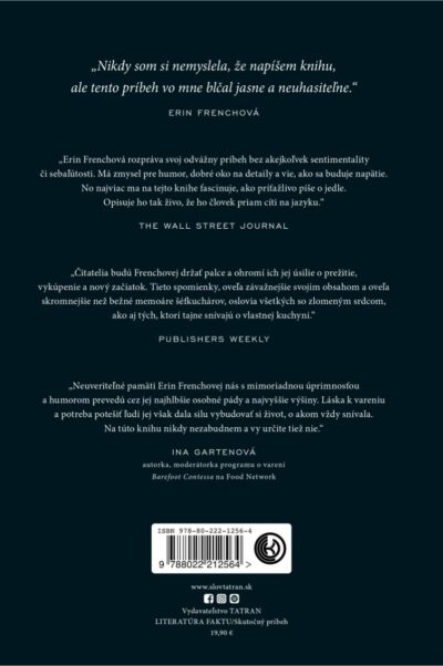 Erin sa zamilovala do jedla už ako tínedžerka, keď pracovala v otcovej reštaurácii. Vtedy ešte nemohla tušiť, že od úspechu ju delí dlhá, tŕnistá cesta. Stala sa slobodnou matkou bez práce, keď každý nasledujúci deň prinášal iba temnotu a úzkosť. Únik hľadala v tabletkách, ktoré sľubovali uvoľnenie, no nakoniec jej priniesli závislosť. Jej svetlom a útechou sa stal krásny syn, ktorý ju nasmeroval na cestu úspešnej podnikateľky. Erin Frenchová vybudovala z ničoho vlastnú reštauráciu The Lost Kitchen, ktorá sa stala svetovou senzáciou.