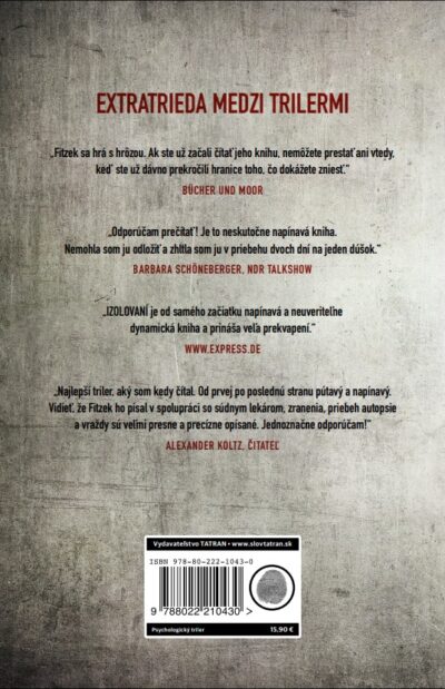 Pán Fitzek mal pri tejto knihe moju plnú pozornosť hneď po prvej vete. Po každej dočítanej „fitzekovke“ si poviem: „To je ona, táto je mojou naj,“ a mám pocit, že Izolovaní si tento titul aj udrží. Názov knihy dokonale vystihuje pocity, ktoré som pri čítaní mala – prostredie izolovaného ostrova mi doslova zaliezlo pod kožu. Do toho sa pridala márnica, pitvy a, samozrejme, napínavá zápletka, ktorú som napriek mojim teóriám (zas) nerozlúštila. Ako celok to na mňa pôsobilo brutálnejšie a temnejšie ako predošlé autorove knihy. Možno tomu dopomohol pán Tsokos. Každopádne odporúčam každému milovníkovi trilerov.