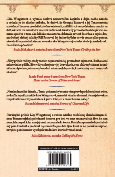 Lisa pretavila skutočnosť do strhujúceho a nervy drásajúceho románu. Silný príbeh rodiny, osudy sestier, prezradených a aj neprezradených tajomstiev, pripomína kriminálnu zápletku, lebo čitateľ netuší, ako sa všetko skončí. Príbeh rozpráva Rill, ktorá sa má postarať o svojich súrodencov. Vydaná napospas krutej riaditeľke bojuje zo všetkých síl, aby udržala sestry a bračeka spolu vo svete plnom nebezpečenstva a neistoty. Celý prípad by upadol do zabudnutia, keby sa oň nezačala zaujímať vplyvná právnička Avery Staffordová, ktorá pri náhodnom stretnutí v starobinci pochopí, že korene jej prominentnej rodiny treba hľadať v sirotinci.