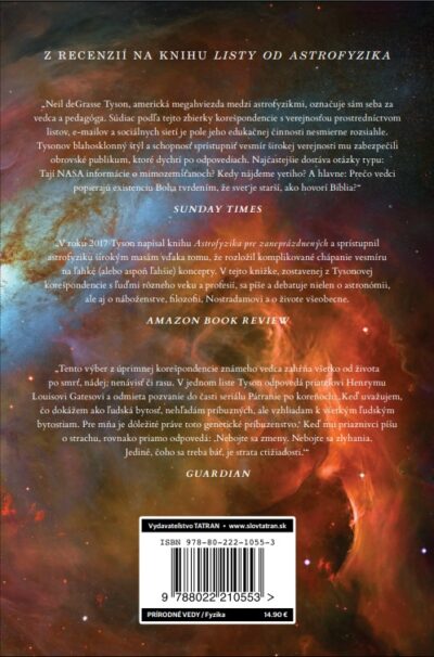 Vďaka nadšeným, fundovaným a jasne formulovaným názorom na stav súčasnej vedy a poznatkov o vesmíre vznikla na sociálnych sieťach amerického astrofyzika Neila deGrasse Tysona jedna z najväčších internetových skupín nasledovateľov. V tejto knihe zverejňuje svoju korešpondenciu s ľuďmi z celého sveta, ktorí ho oslovili pri hľadaní odpovedí na najrozmanitejšie otázky súčasnosti.