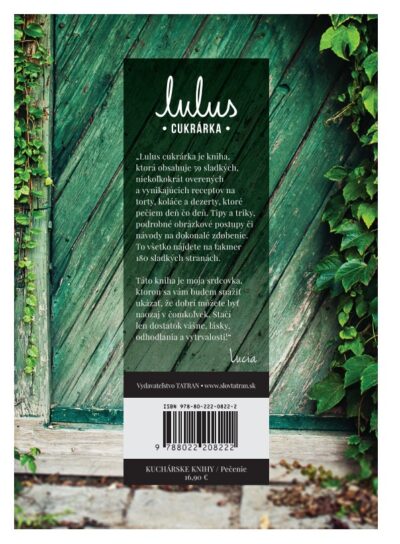 „Lulus cukrárka je cukrárska kniha, ktorá obsahuje 59 sladkých, niekoľkokrát overených a vynikajúcich receptov na torty, koláče a dezerty, ktoré pečiem deň čo deň. Tipy a triky, podrobné obrázkové postupy či návody na dokonalé zdobenie. To všetko nájdete na takmer 180 sladkých stranách.