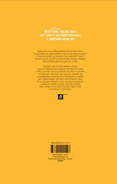 Zaujímavé čítanie o mladej Slovenke v cudzine, v New Yorku. Prostredie bolo výborne vykreslené, akoby som sa tam tam ocitla aj ja. Ale ani tam život nie je úplne jednoduchý, čo ukazuje aj táto kniha, americký život vie byť aj ťažký. V knihe sa rozoberajú aj aktuálne témy, čo je super. Inšpiratívne čítanie.