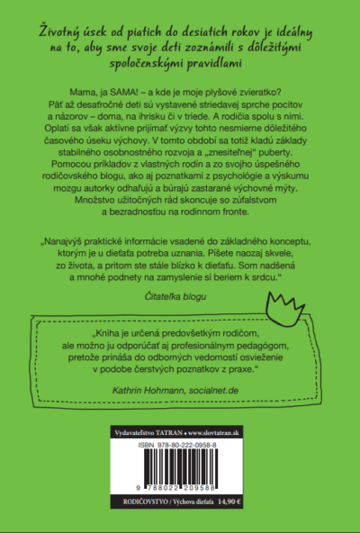 Pri výchove je dôležité vytvoriť dôvernú atmosféru medzi rodičmi a deťmi, aktívne počúvať, čo ich trápi, ísť im dobrým príkladom, hovoriť jasnou rečou, vysvetliť im dôsledky nesprávneho konania, napr. ak klamú alebo kradnú, a formulovať pred nimi svoje očakávania. Autorky tejto knihy zdôrazňujú, že každá rodina je individuálna jednotka zložená z jedincov odlišných pováh a potrieb, takže nemôže existovať jediný „správny“ spôsob výchovy. Ich rady sú výsledkom pozitívnych a negatívnych skúseností, ktoré nazbierali počas života so svojimi deťmi. Ich argumenty treba brať ako podnety a vysvetlivky, nie ako zoznam pracovných úloh, ktorého položky si odškrtávate a jeho zaručeným výsledkom bude šťastné a zdvorilé desaťročné dieťa.