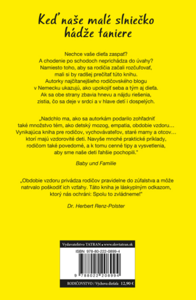 Dozvieme sa, ako upokojiť nielen seba, ale aj svoje dieťa a vybudovať si harmonický vzťah. Autorky sa pokúšajú nájsť hranice, keď môžeme k dieťaťu aj v návale hnevu láskyplne pristúpiť a zároveň trvať na určitých pravidlách, aby sa detský mozog postupne naučil venovať nielen vlastným záujmom, ale vnímať aj potreby ostatných. Kniha nielenže poskytne praktické rady, ale vysvetľuje reakcie dieťaťa aj z vedeckého hľadiska a na základe vlastného výskumu autoriek.