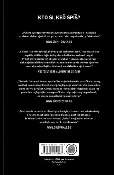 Poviem vám, že Fitzek mi riadne zamotal hlavu. Na knihe pre mňa bola okrem námesačnosti atraktívna aj téma architektúry a neostala som sklamaná. Jednej aj druhej téme sa dôkladne povenoval a ja som len žasla nad jeho predstavivosťou. Leon je postava, s ktorou budete prežívať každý jeden okamih. Budete sa báť. Nebudete chápať. Stratíte pojem o realite – a to nielen o Leonovej, ale skôr či neskôr aj o tej vlastnej. Fitzek prináša jedinečný príbeh na hranici medzi snením a bdelosťou, príbeh, v ktorom nebudete vedieť, čo je skutočné.