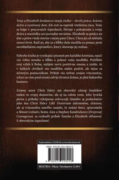 Fabryho kniha je vynikajúci prameň pre každého kresťana, naučí vás veľmi mnoho o hĺbke a pokore vašej modlitby. Prehĺbite svoj vzťah k Bohu, zažijete novú pozitívnu zmenu a zistíte, že v ťažkých chvíľach vás modlitba nielen podrží, ale stane sa účinným pomocníkom. Príbeh vás strhne svojou vrúcnosťou, a hoci sa vám pred očami odvíja životná dráma, je plná láskavého humoru.