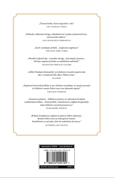 Rovnako ako Piliere zeme, aj Piliere moci sú vzrušujúcim príbehom plným politických a ľúbostných intríg, nechýba ani chladnokrvná vražda a finančná kríza. Ďalšia historická kniha z pera Kena Folletta, od ktorej sa nebudete vedieť odtrhnúť.