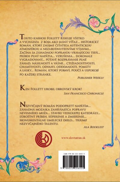 Anglická gotická katedrála – Folletova bytostná vášeň – sa stáva ďalšou nositeľkou deja spolu s rodinou Toma Staviteľa. Autor približuje zanietenie, umenie a majstrovstvo stredovekých staviteľov, ktorí v prímitívnych podmienkach vytvorili kamenné skvosty, ktoré nám i dnes vyrážajú dych.
