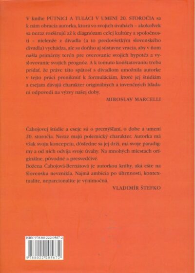 V knihe Pútnici a tuláci v umení 20. storočia autorka sústredene zaznamenáva svoje poznatky o tendenciách moderny a postmoderny v umení, ale taktiež spoločensko-politické súvislosti, s ktorými sú jednotlivé modernistické prúdy a úsilia postmodernistov spojené. Uvažuje o človeku 20. storočia, hľadá príčiny, ktoré spôsobili jeho vykorenenosť, odcudzenosť, úniky od reality, neschopnosť aj neochotu komunikovať. Hľadá životodarné prúdy v živote a umení, ktoré by ich vrátili k podstate, dali by im zmysel. Čahojovej kniha je predovšetkým o názoroch, ktoré by chceli vyvolať skrytý alebo otvorený dialóg nielen s umelcami a vedcami, ale s každým, kto hľadá zmysel toho, čo sa deje okolo neho i v ňom.