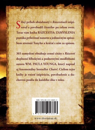 365 zamyslení obsahuje cenné citáty z Rázcestí doplnené hlbokými a podnetnými modlitbami autora WM. PAULA YOUNGA, ktorý napísal aj fenomenálny bestseller Chatrč. Cieľom tejto knihy je vniesť inšpiráciu, povzbudenie a duchovnú posilu do každého dňa v roku.