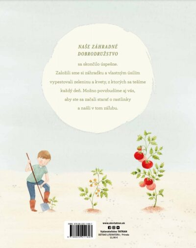 Ilustrovaná detská kniha o rodine Gainesovcov, ktorá sa rozhodla založiť si svoju rodinnú záhradu. Cesta za vypestovaním vlastného ovocia, zeleniny či kvetov nie je vždy jednoduchá a všetci členovia rodiny sa učia bojovať s hladnými zajacmi, nepriaznivým počasím či inými prekážkami. Úsilie, nezdary, úspechy a nakoniec aj krásne výsledky práce tejto milej rodiny dokonale stvárňuje ilustrátorka Julianna Swaneyová. Jej maľby doslova pozývajú na prechádzku po farebnej záhrade a deťom sprostredkujú radosť z času stráveného prácou v prírode.