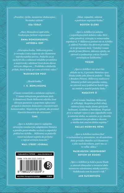 Známy epos o trójskej vojne poznajú asi všetci, ale nie všetci ho čítali aj v prerozprávanom lyrickom štýle od Madeline Millerovej. Nevšedný jazyk autorky vrhá na tento príbeh celkom iné svetlo a jedinečnosť dodáva aj fakt, že sa na udalosti pozeráme očami Patrokla – nie z pohľadu Achillesa či „nestranného“ rozprávača.