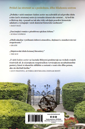 Konečne sme sa dočkali a vydavateľstvo Tatran nám koncom novembra prinieslo dlho očakávaný príbeh poslednej siedmej sestry. Na jeho začiatku sa môže zdať, že všetko sa vyrieši rýchlo a pomerne jednoducho, no nebola by to Lucinda, ak by dej poriadne nezamotala. Takže postupom času čitateľ prehodnocuje prvotné pocity a myšlienky.