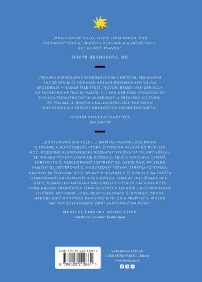 Veľmi zajímava kniha, ktorá sa venuje traumám. Knihu som si kúpil a prečítal zo zvedavosti, keďže mala na Goodreads dobre odporúčania a bola mi aj odporučená. Popravde, myslím si, že kniha je skôr vhodná pre veľmi špecifickú skupinu publika, resp. pre odborné kruhy. Nie je to vôbec jednoduché čítanie, musel som sa veľmi zamýšlať nad informáciami. Preklad do slovenčiny je z môjho pohľadu na vysokej úrovni, nakoľko je to veľmi ťažká téma. Človek, ktorý by si túto knihu chcel prečítať, určite by si najskôr mal pozrieť o čom tá kniha je, pozrieť obsah, nahľad ak je k dispozícii a až potom siahnúť po nej, aby vedel do čoho ide.