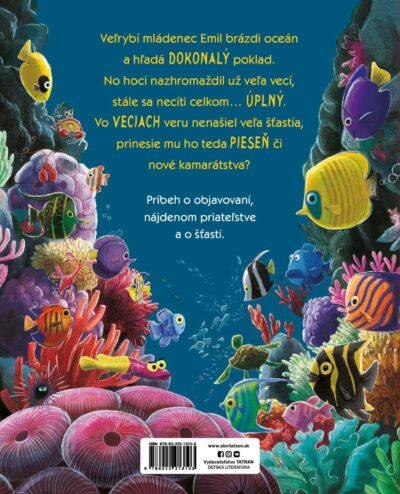 Veľryba Emil pláva bezcieľne v oceánskych vodách a hľadá dokonalý poklad. Myslí si, že to ho urobí šťastným. No niečo mu v živote chýba. Objaví útes aj s jeho obyvateľmi, v ktorých neskôr nájde budúcich priateľov. Čím si ich získa a ako sa zmení, musíte zistiť v tejto nádherne ilustrovanej knižke s krásnym posolstvom.