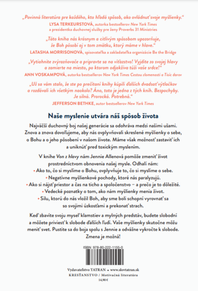 Táto kniha vám pomôže prekonať strach, negativizmus, otupenosť, bolesť, dokonca aj pochybnosti. Ukáže vám, ako sa zbaviť záporných myšlienok a získať slobodu v dôvere k Ježišovi. V tomto zložitom čase, keď bojujeme s koronavírusom a potrebujeme duševný pokoj a rovnováhu, je práve on tým povestným bodom, o ktorý sa môžeme oprieť.